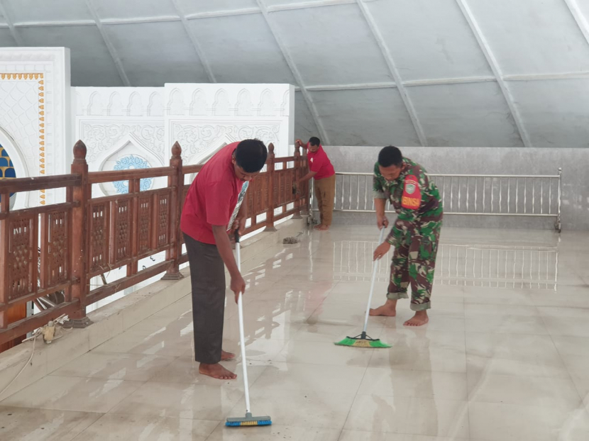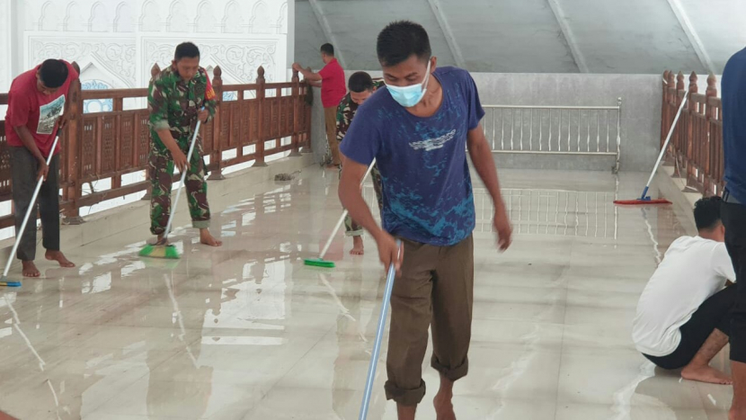 "Agenda ini merupakan program kerja rutinitas pemuda peduli masjid dan melakukan gotong royong bersama Muspika," tulis Maulana.