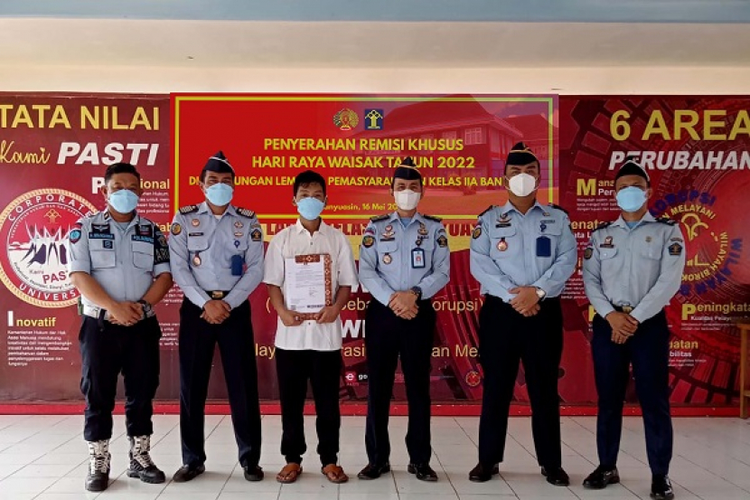 Satu orang warga binaan pemasyarakatan beragama budha di Lapas Kelas IIA Banyuasin Kemenkumhan Sumsel mendapatkan remisi khusus di Hari Raya Waisak. Penyerahan dilakukan secara simbolis oleh Kepala Lapas diwakili oleh Kasubbag Tata Usaha Muhammad Faikar, Senin (16/05/2022).
