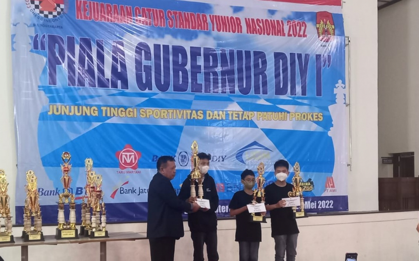 Hadiah untuk ketiganya berupa uang pembinaan, trophy tetap diberikan Ketua Bidang Pertandingan dan Perwasitan PB Percasi, Agus Subandrio, SE,MM,FA didampingi Sekum Pengda Percasi DIY, Jumariyanto, ST dan Ketua Panitia, MF. Iwan Prihastomo, PU di Gedung Dharma Putra Baciro Yogyakarta, Minggu (29/2/2022).