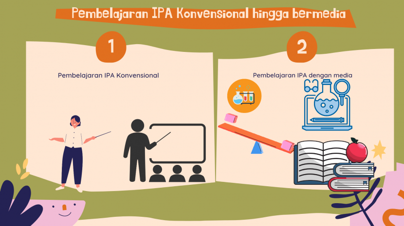 Pada kenyataannya proses pembelajaran IPA belum mencerminkan kegiatan yang mandiri, menyeangkan siswa, karena pembelajaran yang kurang variatif cenderung menggunakan model ceramah belum menggunakan media pembelajaran yang interaktif, yakni pembelajaran yang sangat berpusat pada guru yang menjelaskan materi, pembelajaran pun menjadi kurang bermakna kurang diapresisasi siswa. Pembelajaran tersebut disebut dengan pembelajaran konvensional karena proses pembelajaran yang dilakukan dengan siswa mendengarkan penjelasan guru kemudian dilanjutkan dengan memberikan soal untuk dijawab oleh para siswa.