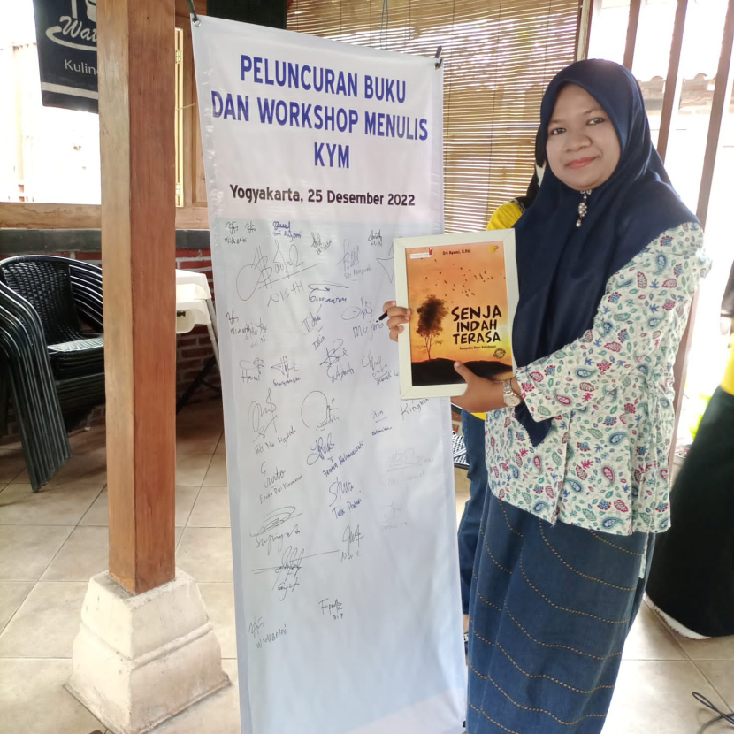“Minggu, 25 November 2022 adalah hari spesial yang saya nantikan. Sungguh bahagia hati ini bisa berkarya di Komunitas Yuk Menulis. Alhamdulilah terbitlah karya solo perdana saya buku kumpulan puisidengan judul Senja Indah Terasa,” tuturnya Bahagia.