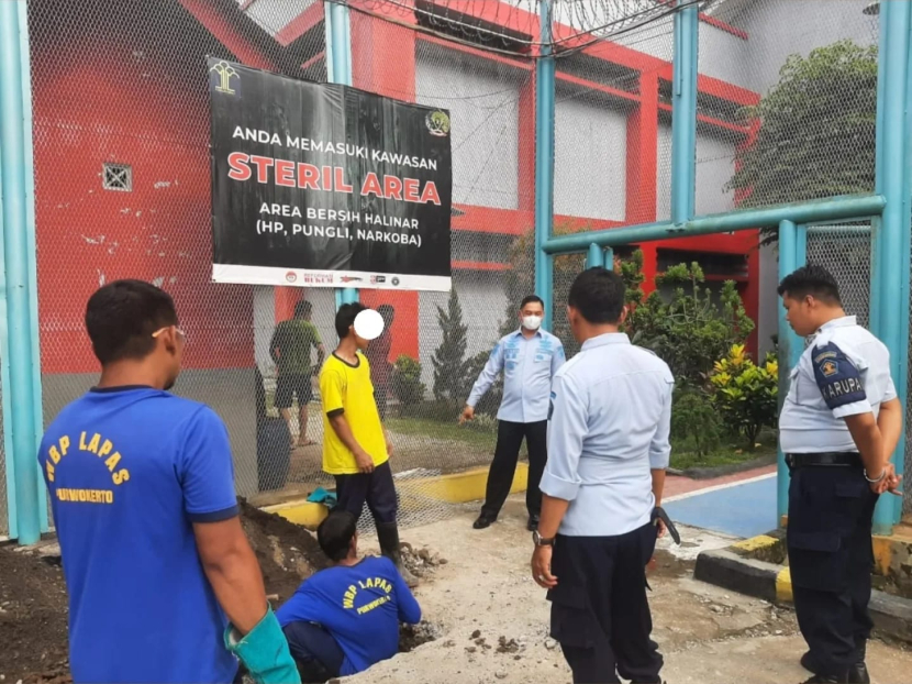 PURWOKERTO ー Kepala Lapas Purwokerto, Bayu Irsahara, tinjau perbaikan saluran air di Blok Hunian Warga Binaan Lapas Purwokerto, Kamis (02/02/2023).