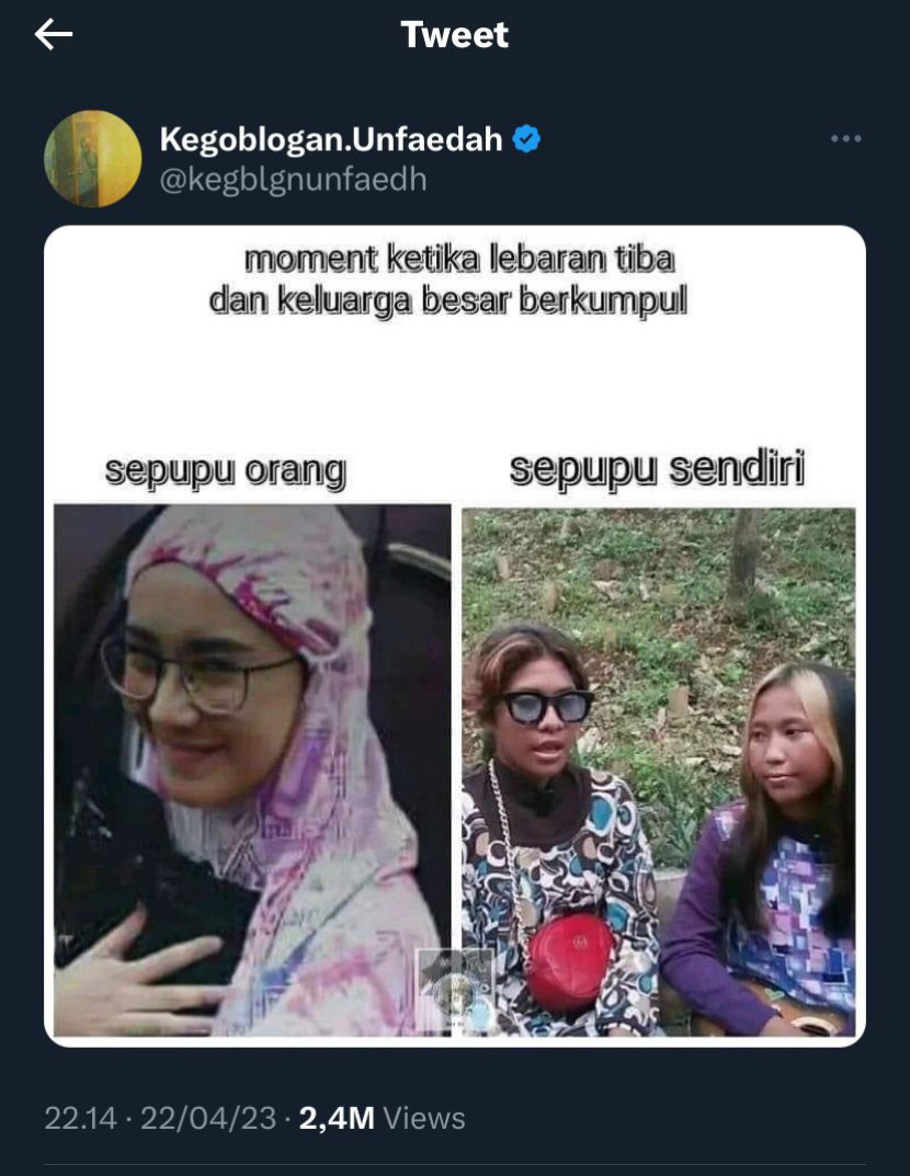 Secara tidak sadar, akun tersebut sebenarnya telah melakukan cyberbullying dengan menjadikan foto perempuan yang tertera pada kolom ‘sepupu sendiri’ sebagai bahan candaan.
