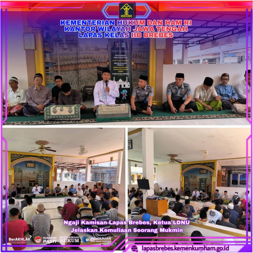 Kegiatan pengajian rutin dari LDNU ini bertempat di Masjid At-Taubah Lapas Brebes yang dimulai setelah kegiatan BTQ para Warga Binaan Pemasyarakatan dan diikuti oleh Warga Binaan Lapas Brebes yang beragama Islam.