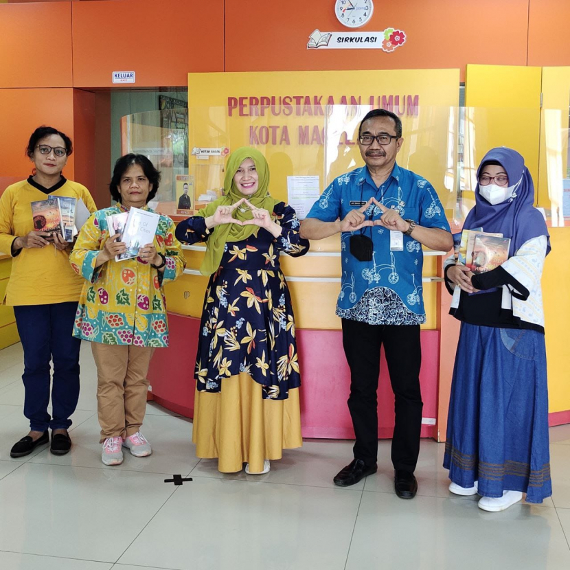 Magelang- Sebagai bentuk nyata dari Peduli Literasi, Motivator Nasional, Fuzna Marzuqoh menyumbang 12 buku karyanya dan diterima langsung Kepala Dinas Perpustakaan dan Kearsipan (Dispusip) Kota Magelang, Drs. Arif Barata Sakti, M.T, Jumat (28/1/2022)