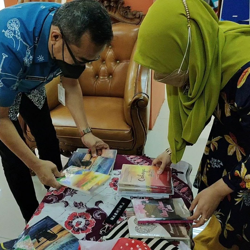 Buku yang diserahkan terdiri 8 judul, yaitu : Telaga Makna, Tale of The Cities, Cahaya Hati, Dia yang Akhirnya Pergi, Misi Hidup, Mengukir Cinta, Atas Nama Cinta, Pelangi Usai Hujan.