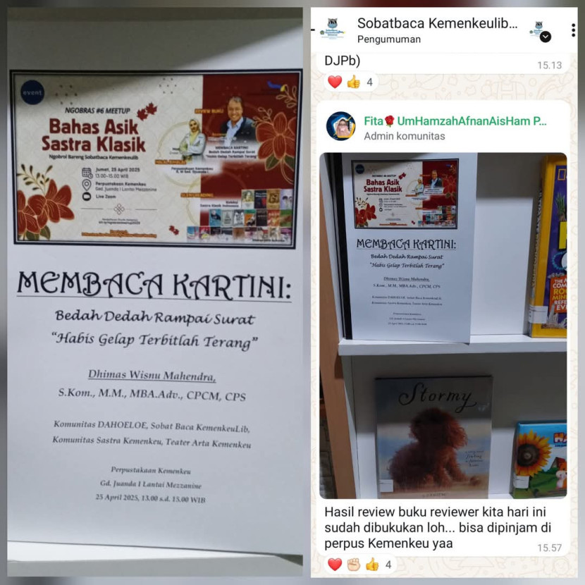 Terima kasih utamanya kepada KemenkeuLib, Pak Indra dan tim yang luar biasa, juga terima kasih Sobat Baca Kemenkeulib, Komunitas DAHOELOE, Komunitas Sastra Kemenkeu (KSK), serta para hadirin yang antusias menikmati, baik daring maupun hadir langsung luring dan aktif berinteraksi, semoga berkenan dan dapat bermanfaat.