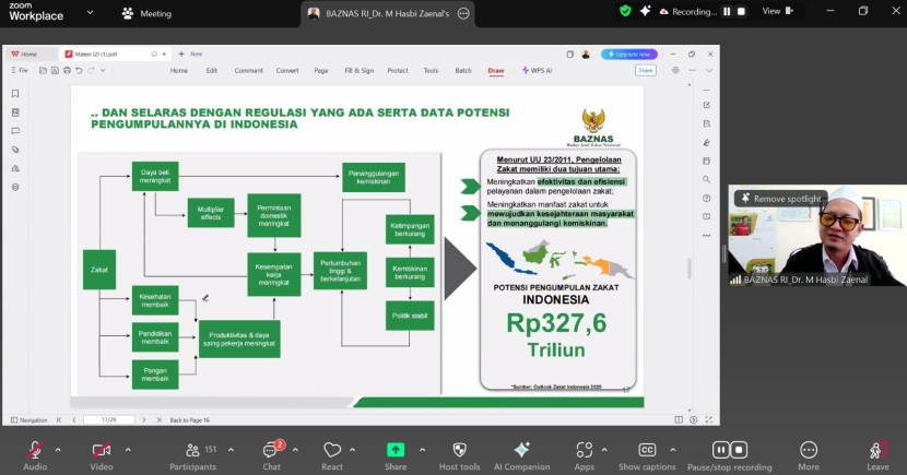 Ia menyoroti peran pemimpin perempuan, sektor pendidikan zakat, hingga tantangan transformasi pascareformasi. Menurutnya, zakat harus menyatu dalam denyut pembangunan nasional dan menjadi indikator keseimbangan ekonomi Islam.