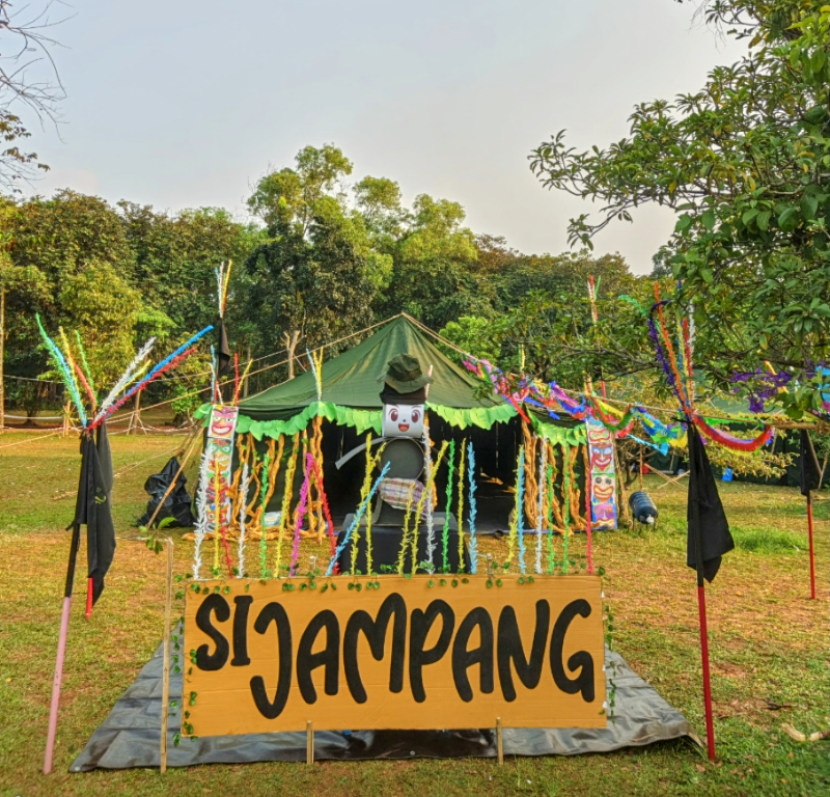 Itulah cerita yang hadir selama kegiatan Jambore Sahabat Anak XXVII. Selain itu, mari kita saksikan karya si Jampang, berkat kolaborasi semua pihak, mereka berhasil mencapai nominasi juara hias tenda. Masih membahas si Jampang yang merupakan tokoh cerita rakyat Indonesia. Tenda tersebut dinamakan si Jampang , dengan hiasan bernuansa Betawi, dipenuhi ornamen buatan tangan adik-adik dan sentuhan dari para kakak pendamping, tenda ini mencuri perhatian banyak peserta maupun panitia. Dengan dihiasi kembang kelapa dengan warna warni yang cerah, papan nama Si Jampang dengan ukuran besar, serta boneka maskot si Jampang karya Sahabat Anak Cijantung menjadikan tenda ini terasa hidup dan bercerita. Salah satu adik bernama Apri berperan sebagai maskot si Jampang dengan menggunakan pakaian yang sama dengan si Jampang, ia memimpin kelompok dalam yel-yel dan baris berbaris.