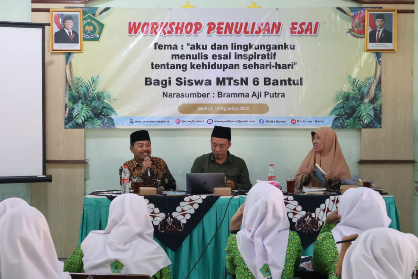 Guru Menulis | 2025-08-15 15:44:21(Bantul-Matsanaba) – Perpustakaan de’Talenta Lib MTsN 6 Bantul terus menguatkan budaya literasi di lingkungan madrasah dengan menggelar pelatihan menulis bagi siswa pada Rabu (13/8/2025) di laboratorium IPA MTsN 6 Bantul. Kegiatan ini dipandu oleh Bramma Aji Putra, seorang wartawan, editor buku, sekaligus Humas Kanwil Kemenag DIY. Pelatihan diikuti antusias oleh para siswa yang ingin mengasah keterampilan menulis mereka.