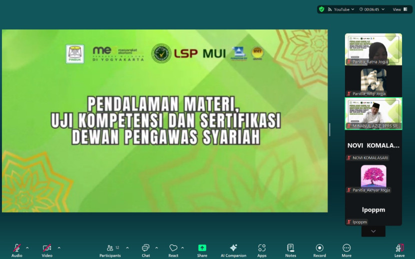 Batch II Pendalaman Materi, Uji Kompetensi, dan Sertifikasi Dewan Pengawas Syariah (DPS) bagi Baitul Maal wat Tamwil (BMT), Koperasi Syariah, Bank Pembiayaan Rakyat Syariah (BPRS), serta Bank Syariah dimulai pada Senin (8/9) secara daring melalui Zoom Meeting. Acara ini merupakan hasil kolaborasi Masyarakat Ekonomi Syariah (MES) DIY, bersama PINBUK Indonesia, ABSINDO, PUSKOPSYAH, serta didukung penuh oleh BPD DIY Syariah.