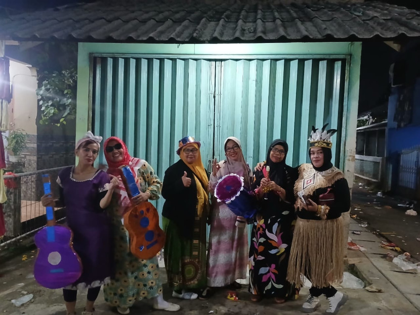 Yang membuat acara semakin seru adalah kreativitas warga dalam menyiapkan penampilan. Ada yang berdandan ala penari daerah lengkap dengan hiasan kepala suku Dayak, ada juga yang tampil kocak dengan kostum warna-warni. Suasana jadi ramai dan penuh canda tawa.