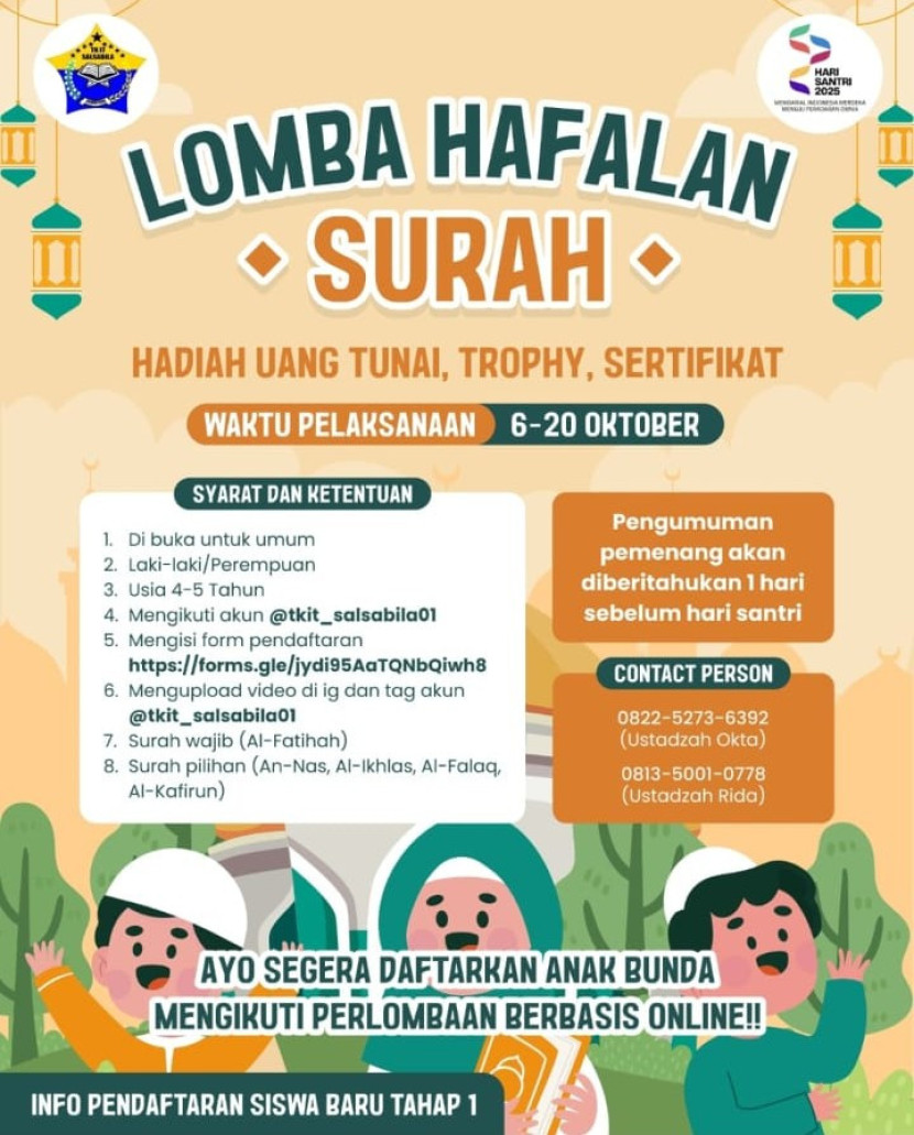 Melalui lomba hafalan surah ini, Pondok Pesantren Salsabila berharap semangat Hari Santri dapat hidup di setiap rumah dan hati anak-anak. Nilai cinta Al-Qur’an, disiplin, dan semangat belajar yang menjadi ciri khas santri diharapkan dapat tumbuh sejak dini.