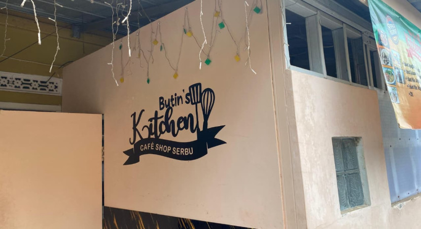 Cafe shop Kitchen Butin Serbu namanya, memang tidak berada di jalan raya besar, melainkan di sebuah gang kecil di tengah perumahan. Lokasi itu sempat dianggap menjadi tantangan karena pengunjung harus masuk gang terlebih dahulu. Namun, Titin menanggapi santai. Ia mengatakan bahwa niat awal bukan untuk menyaingi kafe lain, melainkan sekadar memberikan ruang nyaman dan murah bagi kalangan remaja.