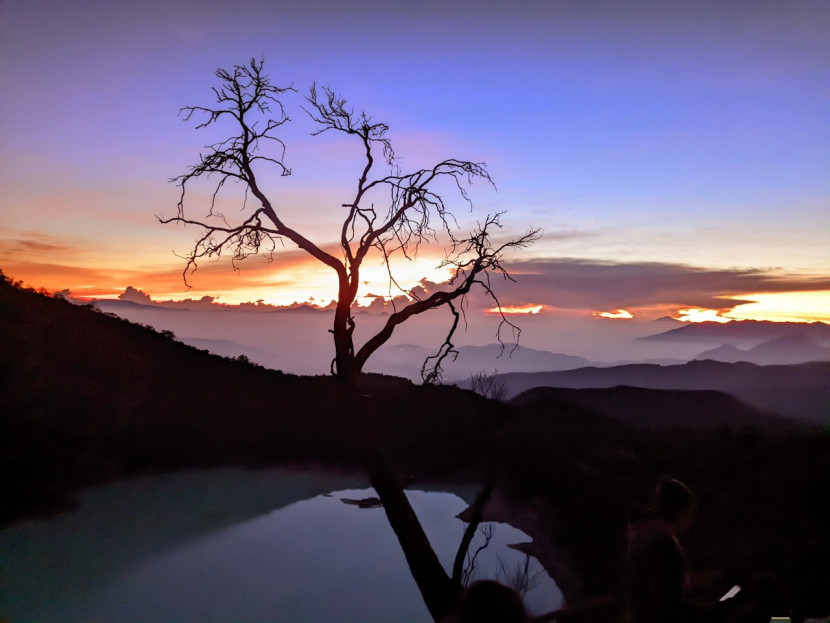 Di puncak ini, siluet pohon kering yang berdiri sendiri menjadi ikon khas. Bentuknya yang unik berpadu dengan latar langit berwarna-warni, menjadikannya spot foto favorit para pendaki. Dari titik ini pula, hamparan pegunungan dan kawah di bawah tampak seperti cermin alam yang memantulkan cahaya pagi dengan lembut.