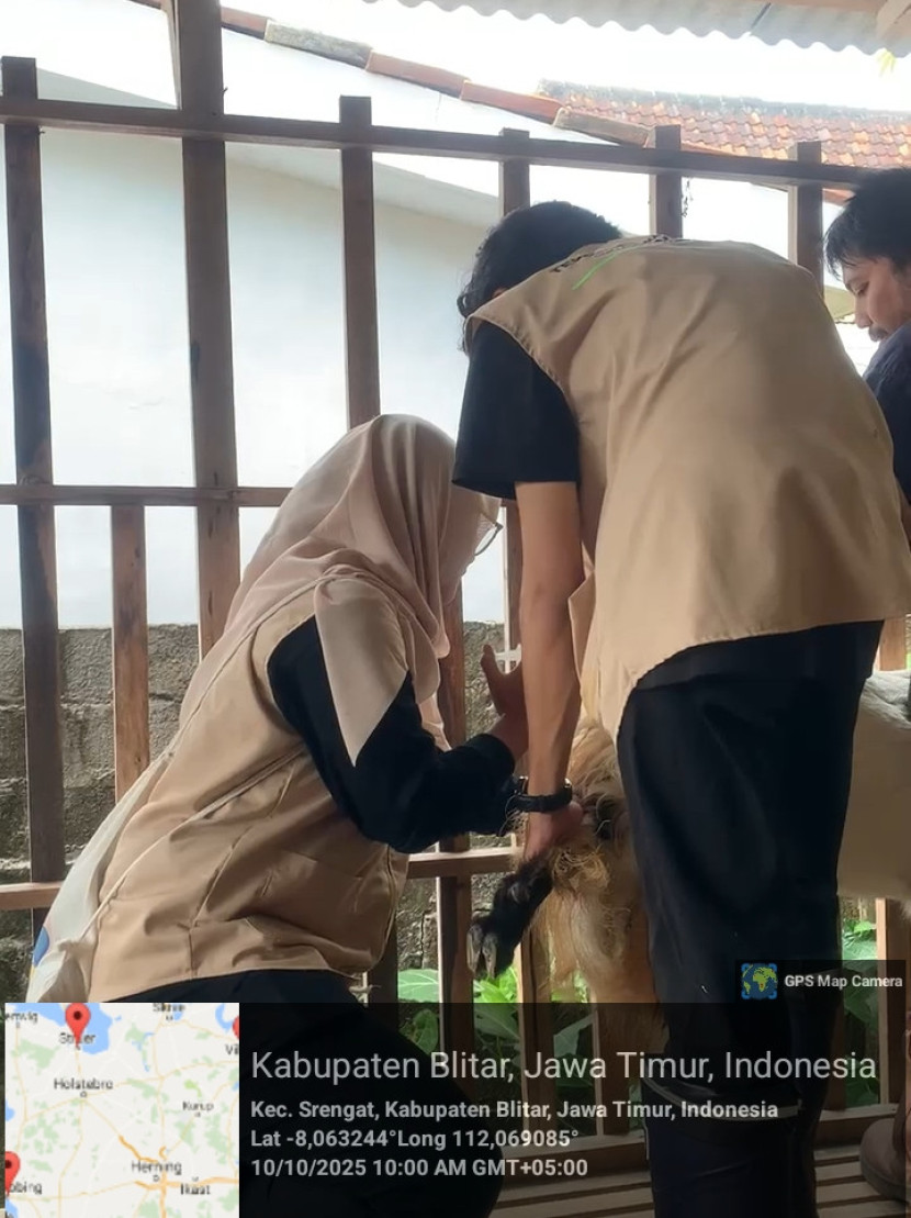 Pada Jumat, 10 Oktober 2025, mahasiswa dari Program Studi Teknologi Veteriner Universitas Airlangga melakukan pengecekan kesehatan hewan ternak di Kecamatan Srengat, Kabupaten Blitar. Kami didampingi oleh seorang anggota Dinas Peternakan dan Perikanan Kabupaten Blitar yang juga alumni Fakultas Kedokteran Hewan Universitas Airlangga. Beliau tidak hanya menemani, tapi juga membimbing kami dalam menjalankan kegiatan serta membantu berkomunikasi dengan para peternak di sana.