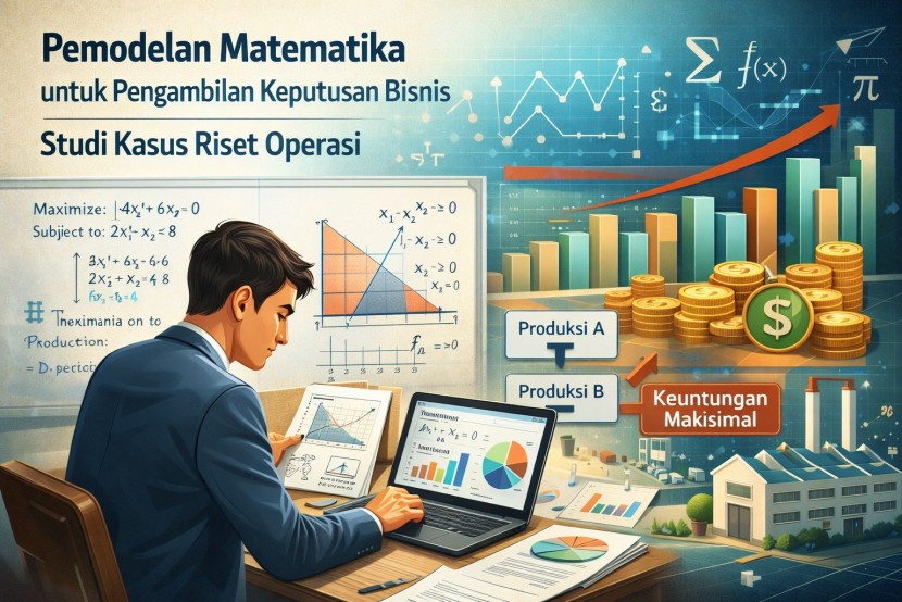Pemodelan Matematika untuk Pengambilan Keputusan Bisnis: Studi Kasus Riset OperasiPendahuluanDalam lingkungan bisnis yang kontemporer, keputusan yang benar menjadi elemen vital yang mempengaruhi keberhasilan sebuah organisasi. Semua jenis perusahaan, baik yang berskala kecil maupun besar, dihadapkan pada beragam pilihan strategis setiap hari yang berimbas pada kinerja operasional, pengeluaran produksi, pelayanan pelanggan, dan laba.