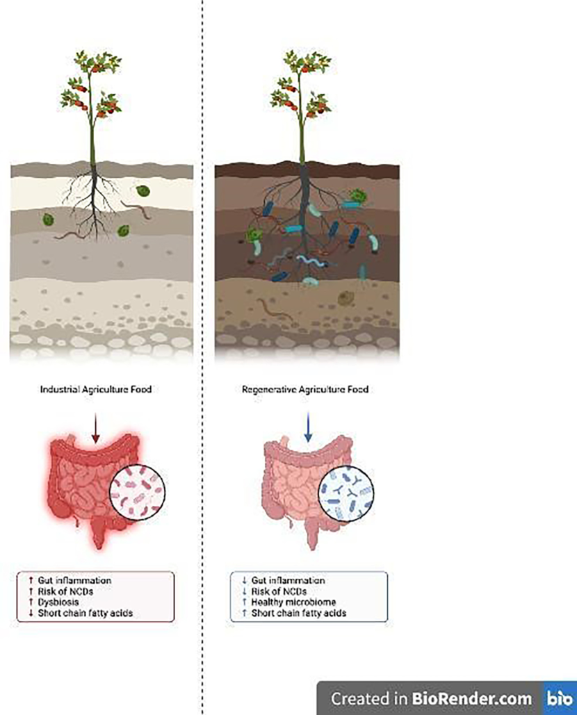 Penelitian tersebut menjelaskan bahwa pertanian industrial yang mengandalkan pupuk sintetis, pestisida, herbisida, antibiotik, dan sistem monokultur telah merusak keanekaragaman mikrobioma tanah. Tanah yang miskin mikroba akan menghasilkan tanaman dengan kualitas nutrisi lebih rendah. Tanaman ini kemudian dikonsumsi manusia, dan pada akhirnya berkontribusi pada gangguan mikrobioma usus.