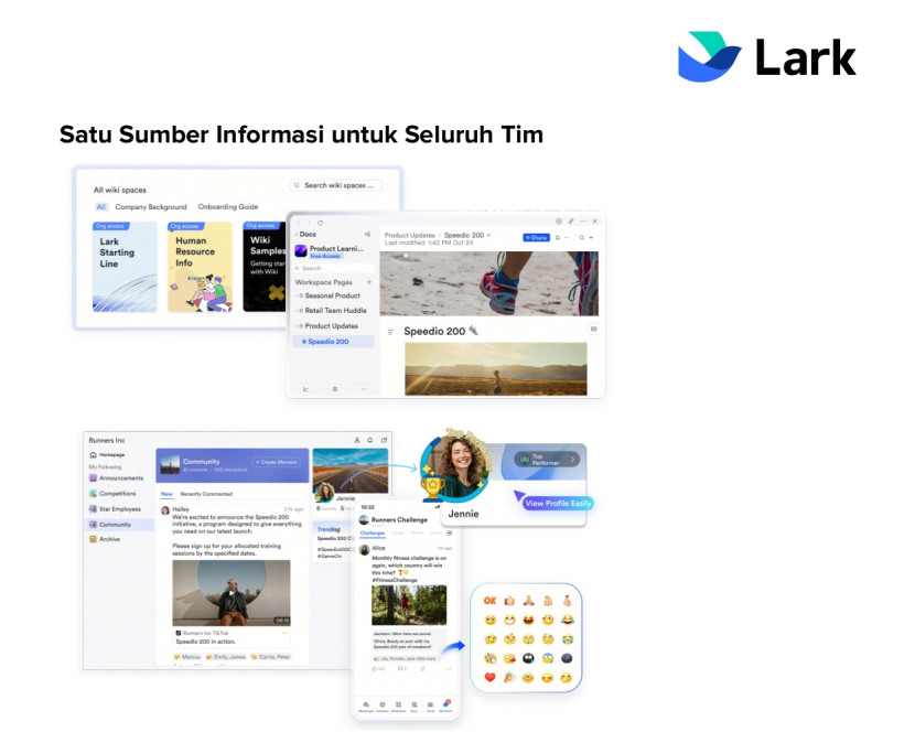 Integrasi ini juga memastikan agar sumber informasi tetap berada di satu tempat yang dapat diakses kapan saja, baik dari desktop maupun perangkat mobile. Melalui Lark Docs, Sheets, Slides, dan Wiki, semua orang dapat bekerja di dokumen yang sama dan dengan konteks yang sama karena setiap perubahan diperbarui secara real-time dan langsung terlihat oleh seluruh tim.