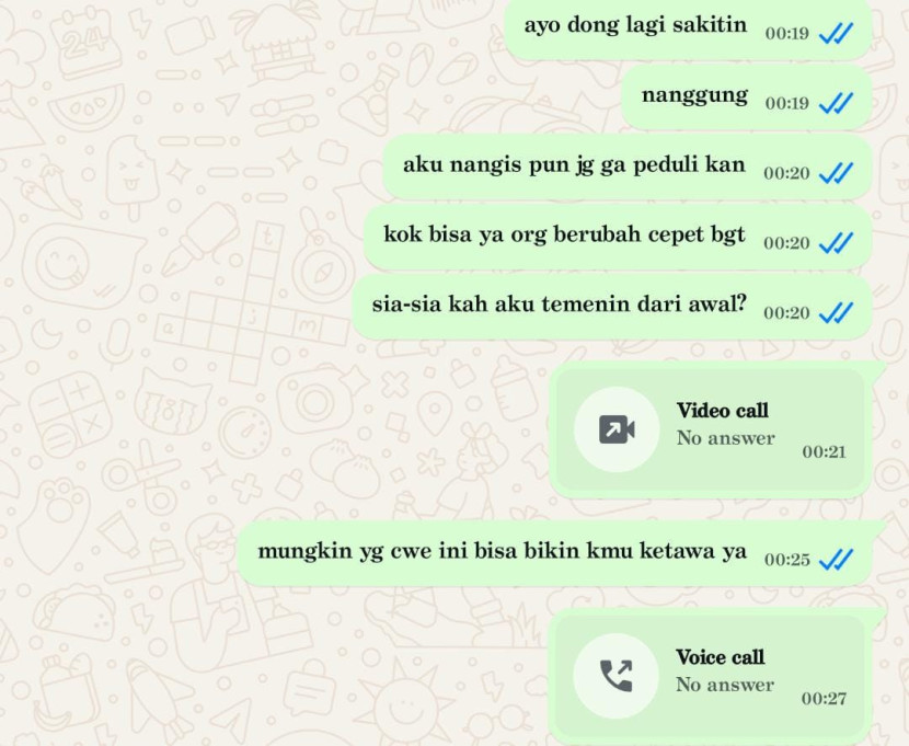 Curhat | 2026-02-13 16:33:21Tulisan ini ada bukan karena udah diagendakan; "ah ntar pas skripsian patah hati deh biar bisa nulis di blog." ENGGA YA! KALAU BISA DIATUR JUGA MAUNYA GA PATAH HATI HUWEHWH. Tadinya tuh ya guys blog ini udah lama ga aku urus, tapi karena tiba-tiba life after break up setelah butterfly era itu (anjay genzi), aku gatau harus ngeluapin perasaan aku ke mana dan ke siapa. Jadi, yaudah deh nulis di sini aja daripada gila.