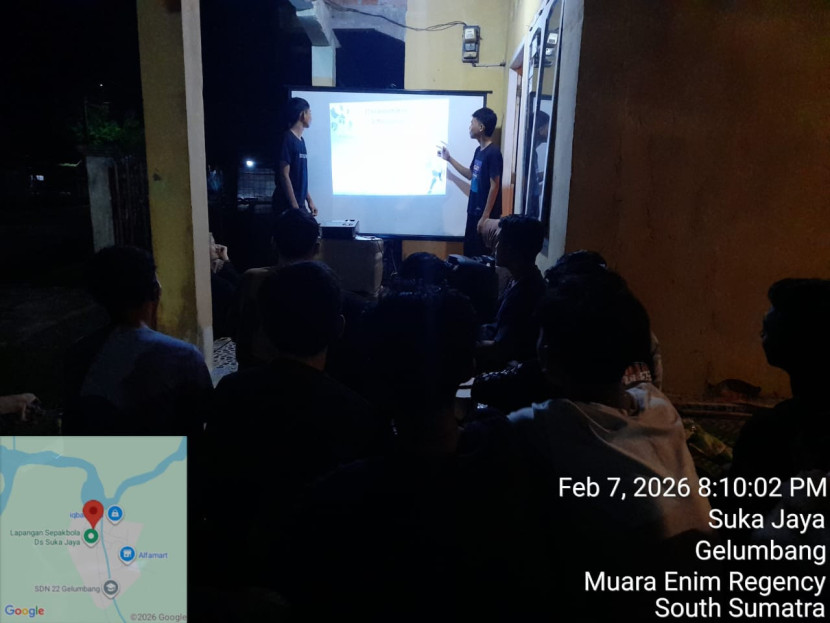 Selain kegiatan di sekolah, Kelompok 75 juga mengadakan pelatihan penggunaan aplikasi Canva untuk anggota Karang Taruna Desa Sukajaya. Pelatihan ini bertujuan untuk membekali pemuda desa dengan keterampilan desain grafis sederhana yang dapat dimanfaatkan untuk membuat poster kegiatan, konten media sosial, hingga materi promosi desa.