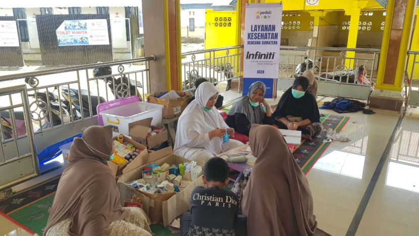 Di tengah suasana pemulihan yang getir itu, sebuah pemandangan berbeda tampak di teras salah satu masjid (Meunasah) desa yang telah dibersihkan. Senin (23/2/2026), kerumunan warga tampak mengantre dengan rapi. Bukan untuk menerima sembako, melainkan menjemput kesembuhan melalui Layanan Kesehatan Gratis yang digelar oleh DT Peduli.