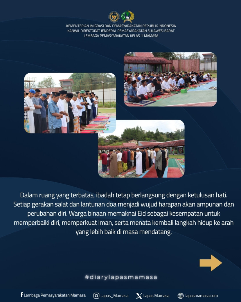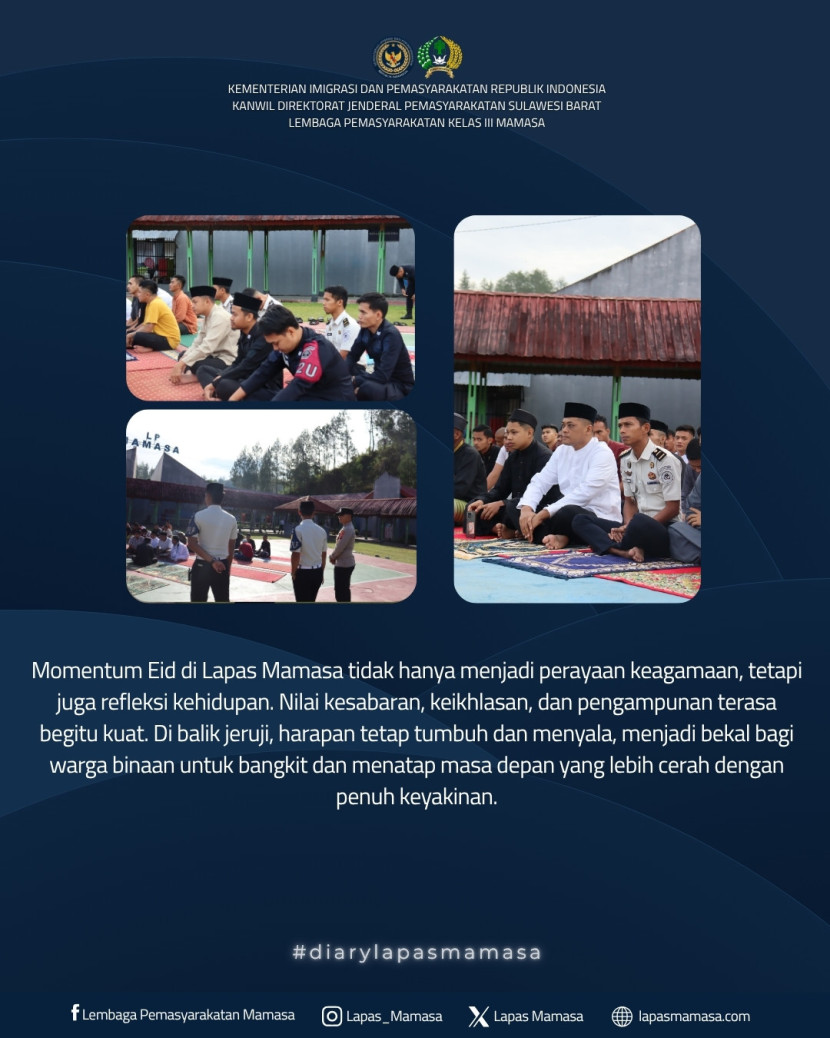 Eid di Lembaga Pemasyarakatan Kelas III Mamasa menghadirkan makna yang mendalam. Di tengah keterbatasan, harapan tetap tumbuh dan menjadi semangat baru bagi seluruh yang hadir untuk menatap masa depan yang lebih baik dengan penuh keyakinan.