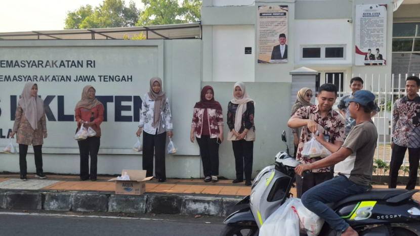 Klaten — Dalam rangka menumbuhkan kepedulian sosial serta mempererat hubungan dengan masyarakat, pegawai Balai Pemasyarakatan Kelas II Klaten menggelar kegiatan Jumat Berkah dengan membagikan makanan kepada masyarakat di depan kantor pada Jumat (17/04/2026). Kegiatan ini berlangsung dengan lancar dan penuh antusias dari para pegawai maupun warga sekitar yang menerima manfaat.