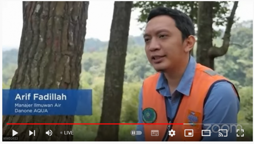 Sebelum para nara sumber menjelaskan esensi dari air dan perubahan iklim, para peserta webinar disuguhi video tentang Cerita Kebaikan Danone AQUA berjudul “Menjaga Sumber Air untuk Keseimbangan Alam”