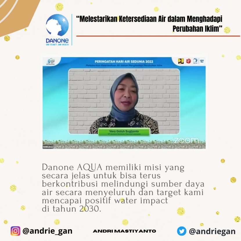 Untuk itu, bertepatan dengan Hari Air Sedunia, Danone-AQUA menyelenggarakan Webinar bertajuk "Melestarikan Ketersediaan Air Dalam Menghadapi Perubahan Iklim" secara virtual pada Selasa (23/3/2022).